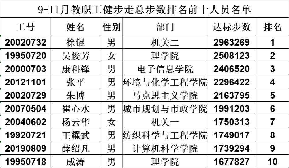 近日,由校工会主办的2025年“健步打卡200天,强身健体勇争先”教职工健步走活动圆满收官。活动自3月27日启动至11月30日结束,历时248天,吸引全校1035名教职工参与,以脚步践行“健康生活,快乐工作”的理念,成为教职工参与面最广、人气最高的品牌之一。